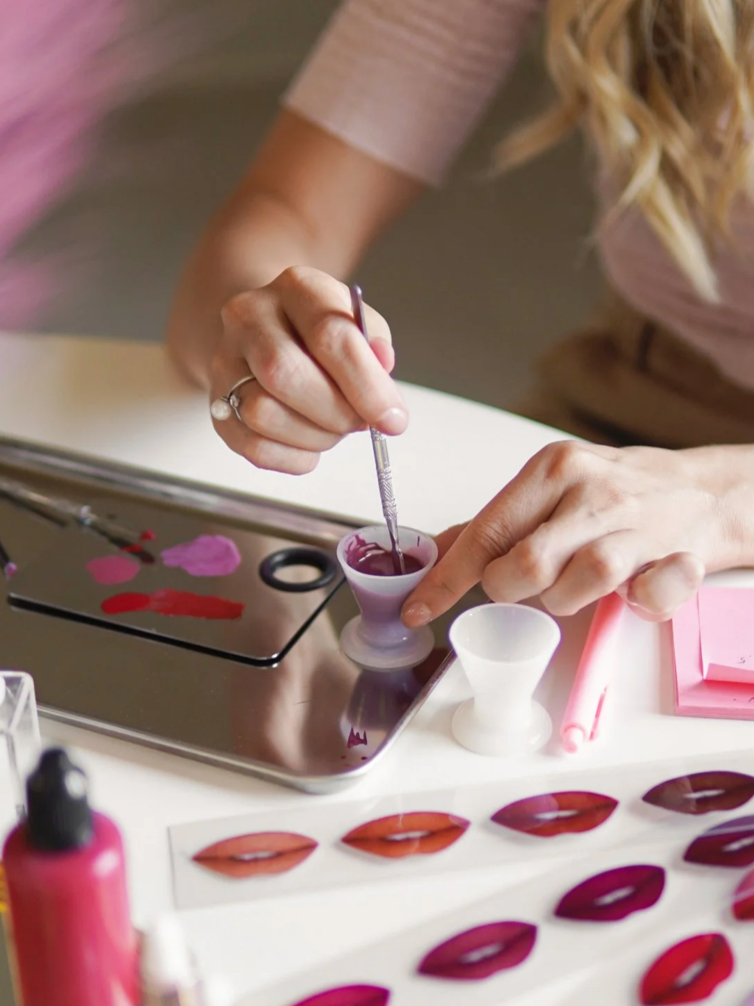 Ainulaadne võimalus katsetada oma huultel erinevaid värve ning leida endale kõige ideaalsem. Kogu protsess on loominguline, kuid kunstiannet pole selleks vaja ja sellega saab hakkama igaüks. Meie koolitajad on teie jaoks alati olemas, et aidata ja nõustada sobiva tooni tegemisel.